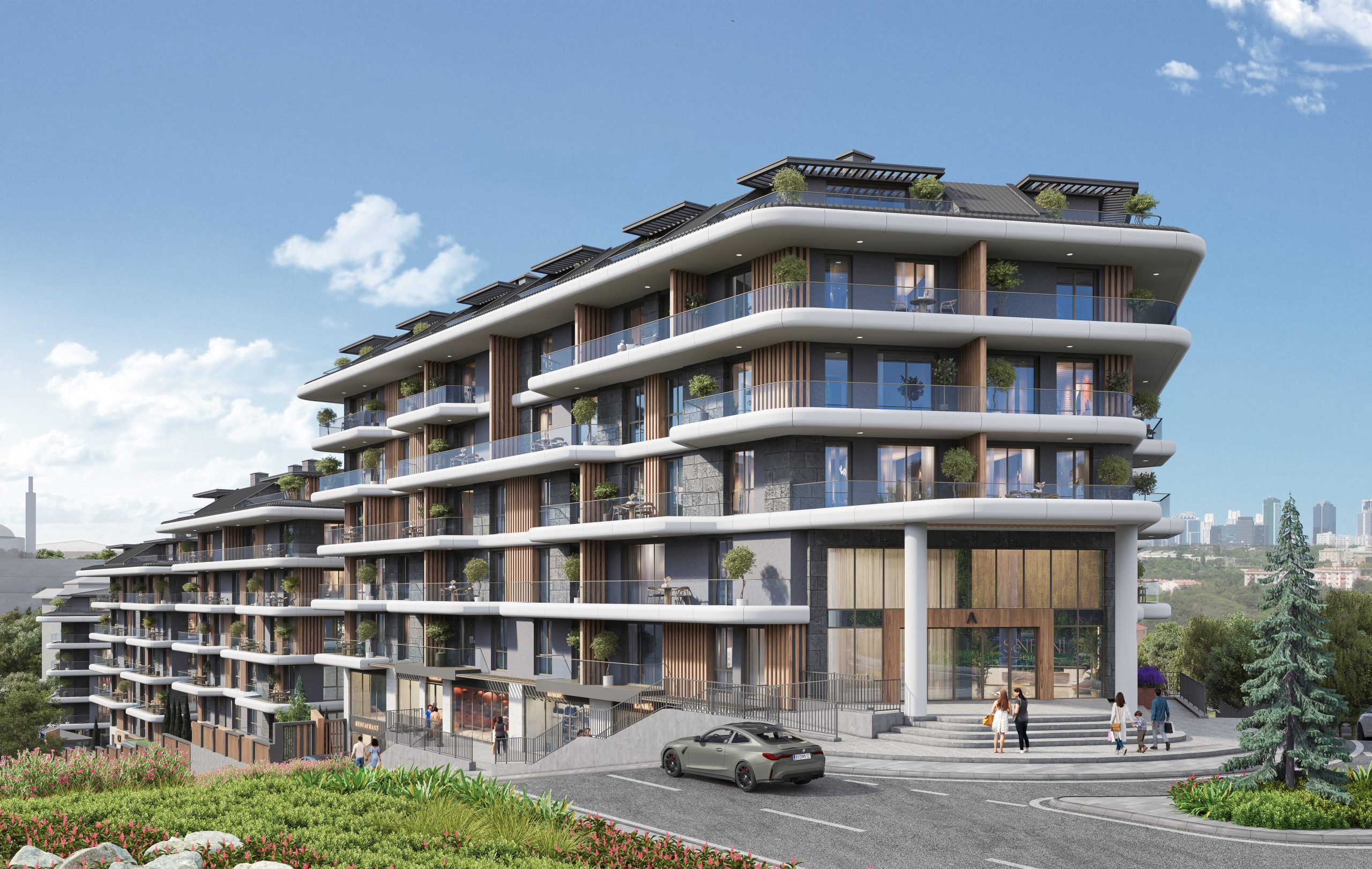 Senfoni Etiler redefines urban luxury with its distinctive horizontal architecture concept. Residences feature expansive living spaces thoughtfully integrated with nature, offering private balconies and terraces for each unit, creating a serene and privileged living environment while maintaining effortless access to the city’s energy.